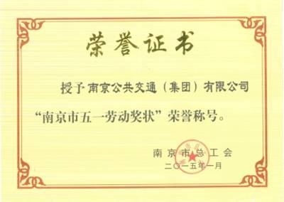 • 南京市五一勞動獎狀